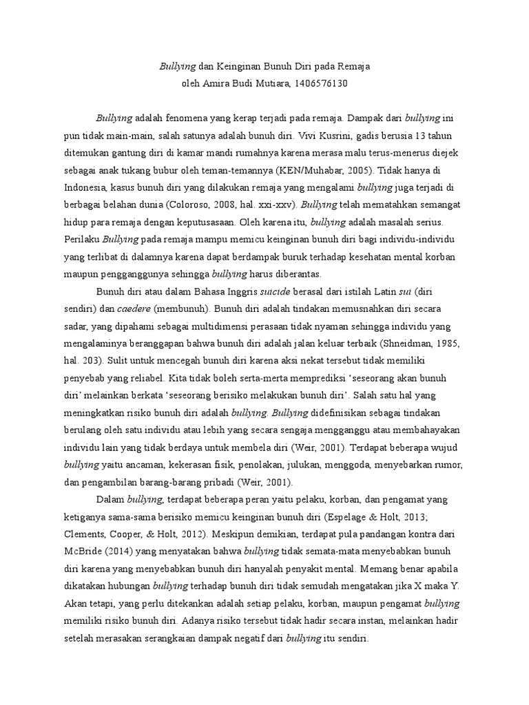 Esai Bullying dan Bunuh Diri