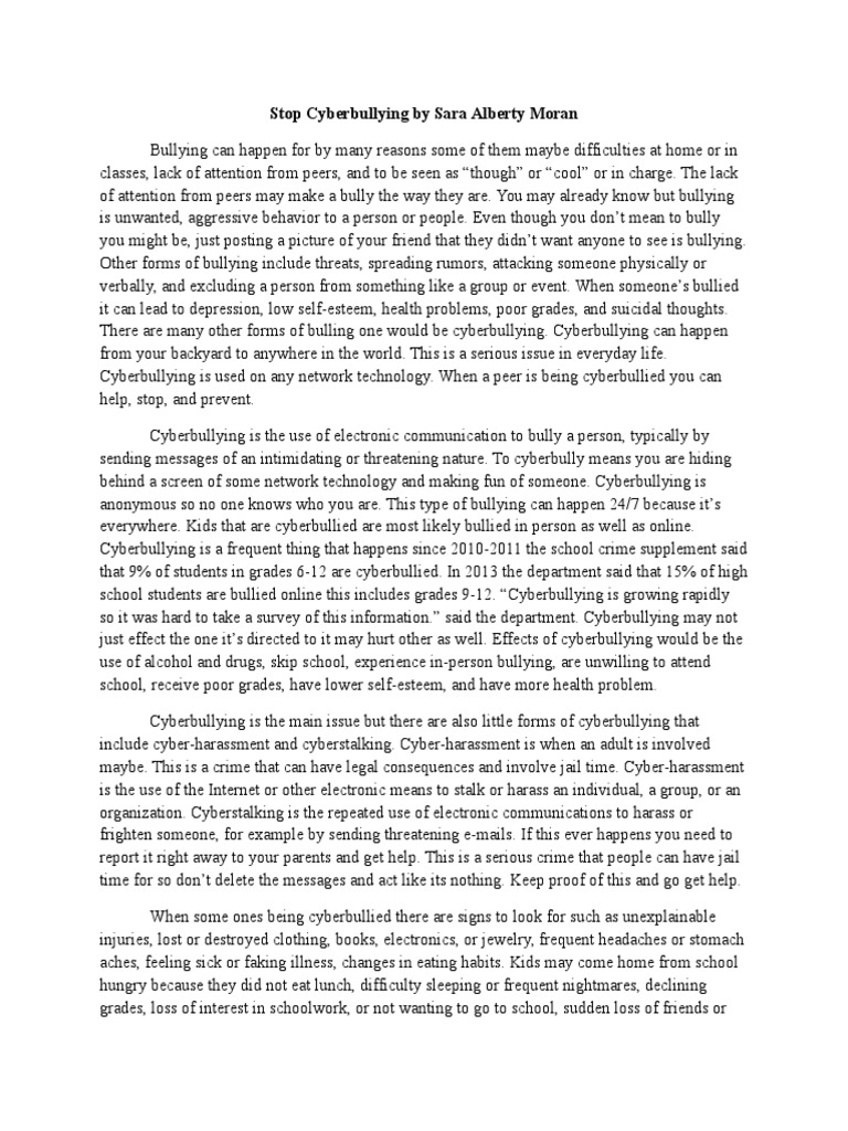 Informative essay about cyber bullying