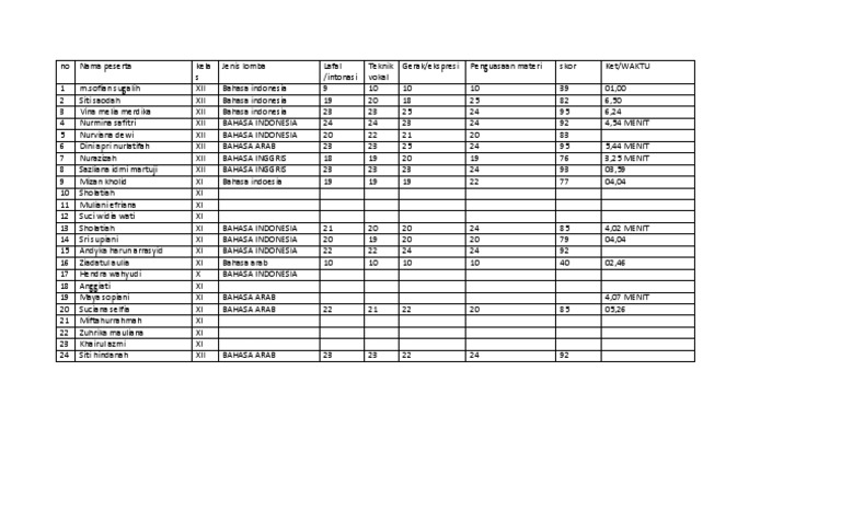 Format Penilaian Lomba Tilawah Contoh Blangko Nilai