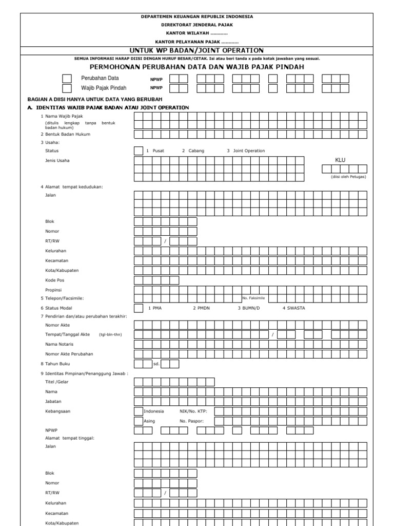 Petunjuk Pengisian Formulir Perubahan Data Wajib Pajak – cute766