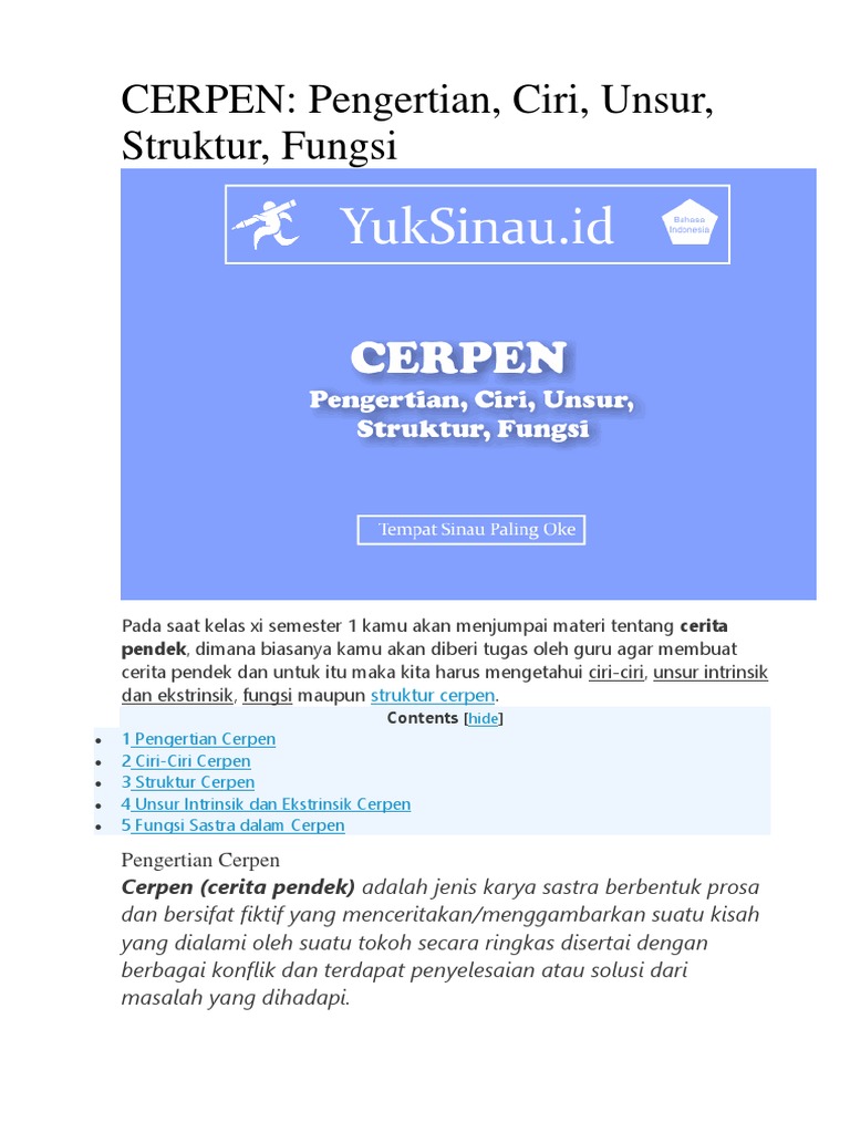 Pengertian Cerpen, Ciri, Struktur, Unsur, dan Fungsi …