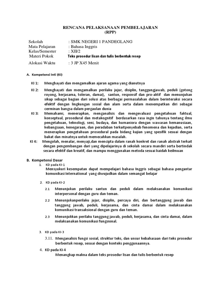 DOC) RPP BAHASA INDONESIA TUGAS TERAKHIR | ericha erc - Academia.edu
