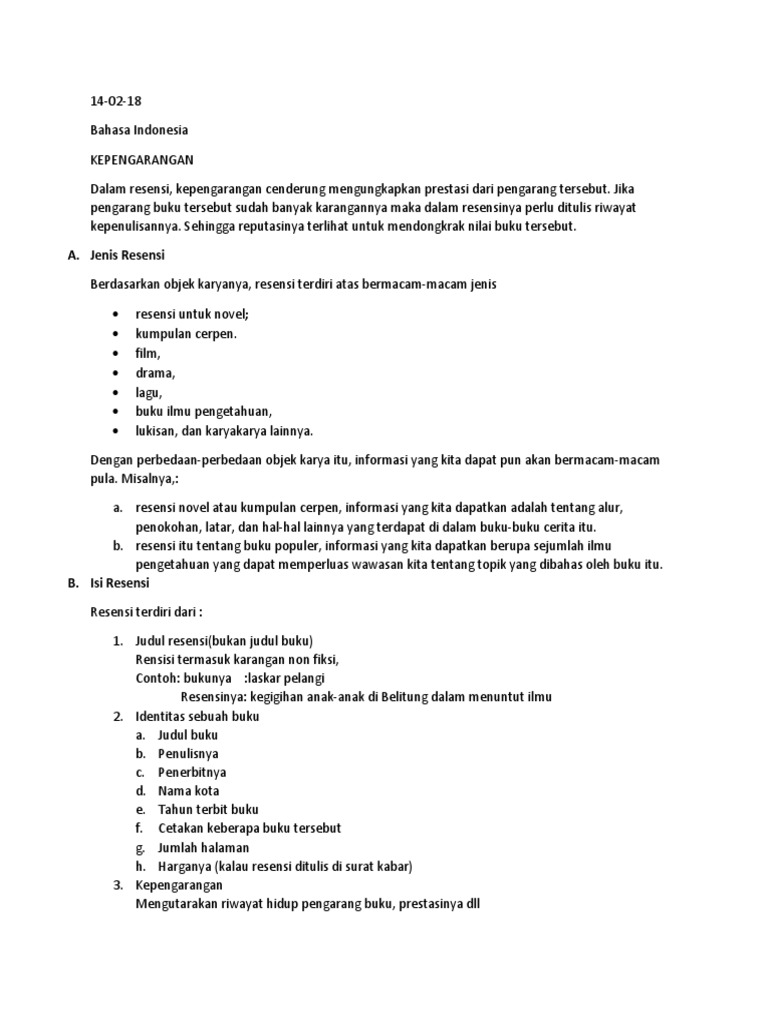 DOC) Resensi adalah suatu tulisan atau ulasan mengenai nilai sebuah hasil karya atau buku | Hilal Habib - Academia.edu