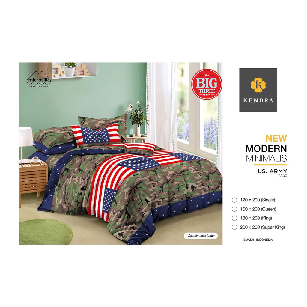 Bedcover + Sprei KENDRA 180X200 / 160x200 motif US ARMY - KING 180 …