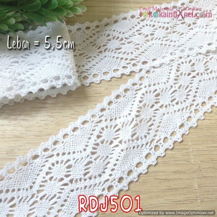Jual RDJ1701 Renda Rajut / Kait Putih Lebar 5 cm (Per Meter) - Jakarta Timur - Toko Kain Flanel dot com | Tokopedia