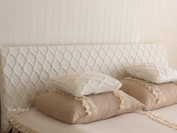 Handmade knitted headboard cover. White knit diamond headboard | Etsy