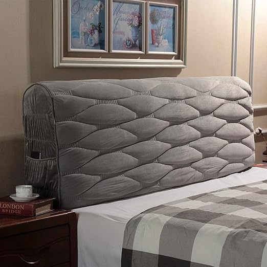 Amazon.com: Obokidly Velvet with Quilted Stretch Bed Headboard Slipcover Protector Solid Color Dustproof Cover Bedside Bedroom Decorative Protectors (Grey, Queen (59")): Furniture & Decor