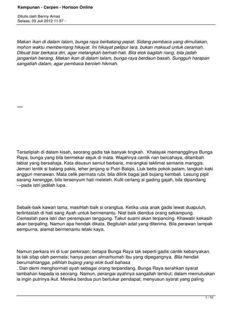 Kempunan - Cerpen - Horison Online. Ditulis oleh Benny Arnas Selasa, 03 Juli :57 - - PDF Free Download