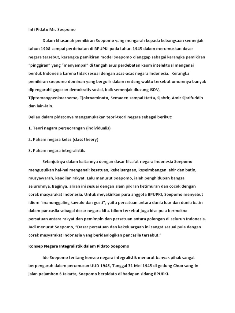 buat kesimpulan/inti dari pidato Soekarno 1 Juni 1945 - Brainly.co.id