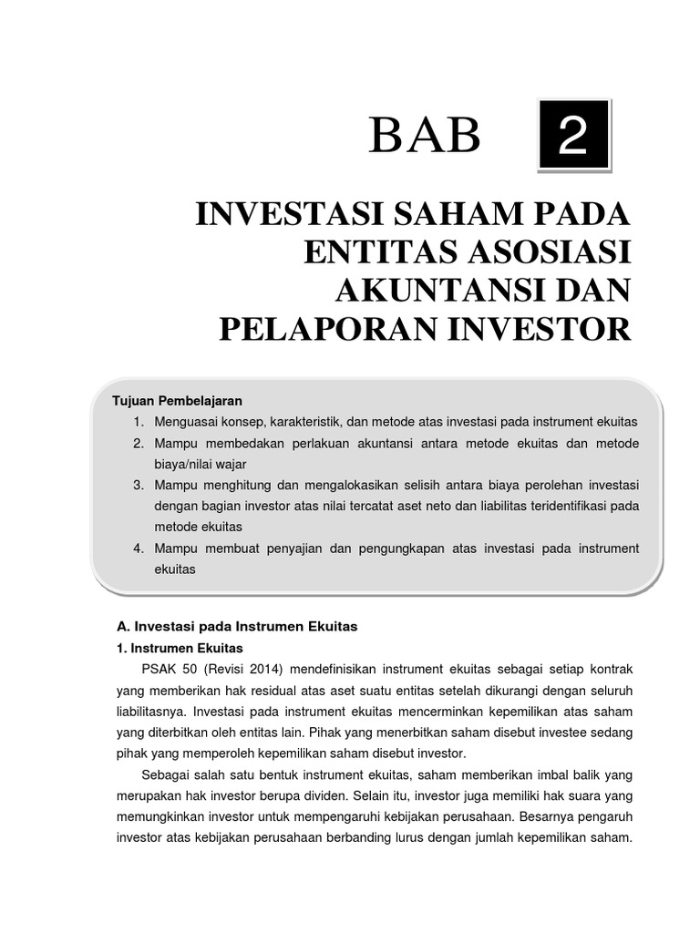 INVESTASI SAHAM PADA ENTITAS ASOSIASI (BAB 2) update.pdf - INVESTASI SAHAM PADA ENTITAS ASOSIASI AKUNTANSI DAN PELAPORAN INVESTOR AKUNTANSI KEUANGAN | Course Hero