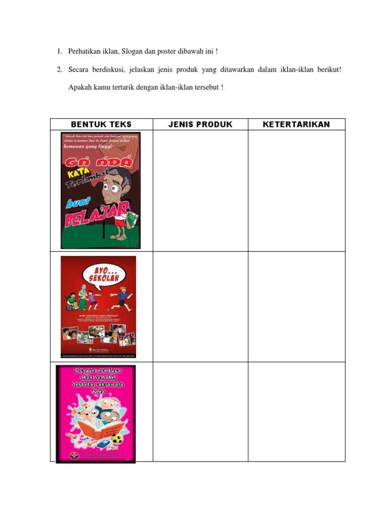 Pertanyaan;1.Coba kalian tentukan jenis iklan apa sih yang ada di gambar ini ?2.lalu kalian tulis - Brainly.co.id