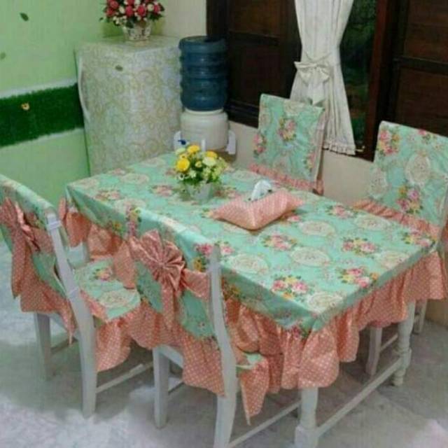 Taplak meja makan table cloth sarung kursi chair cover perlengkapan rumah dapur home decoration kitchen set dekor shabby shabbychic cover, Kitchen & Appliances di Carousell