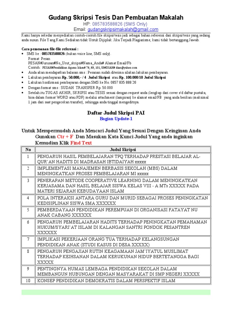 JUDUL SKRIPSI PENDIDIKAN AGAMA ISLAM (TARBIYAH)-2 (gudangmakalah.blogspot.com) | Eko Guevara - Academia.edu