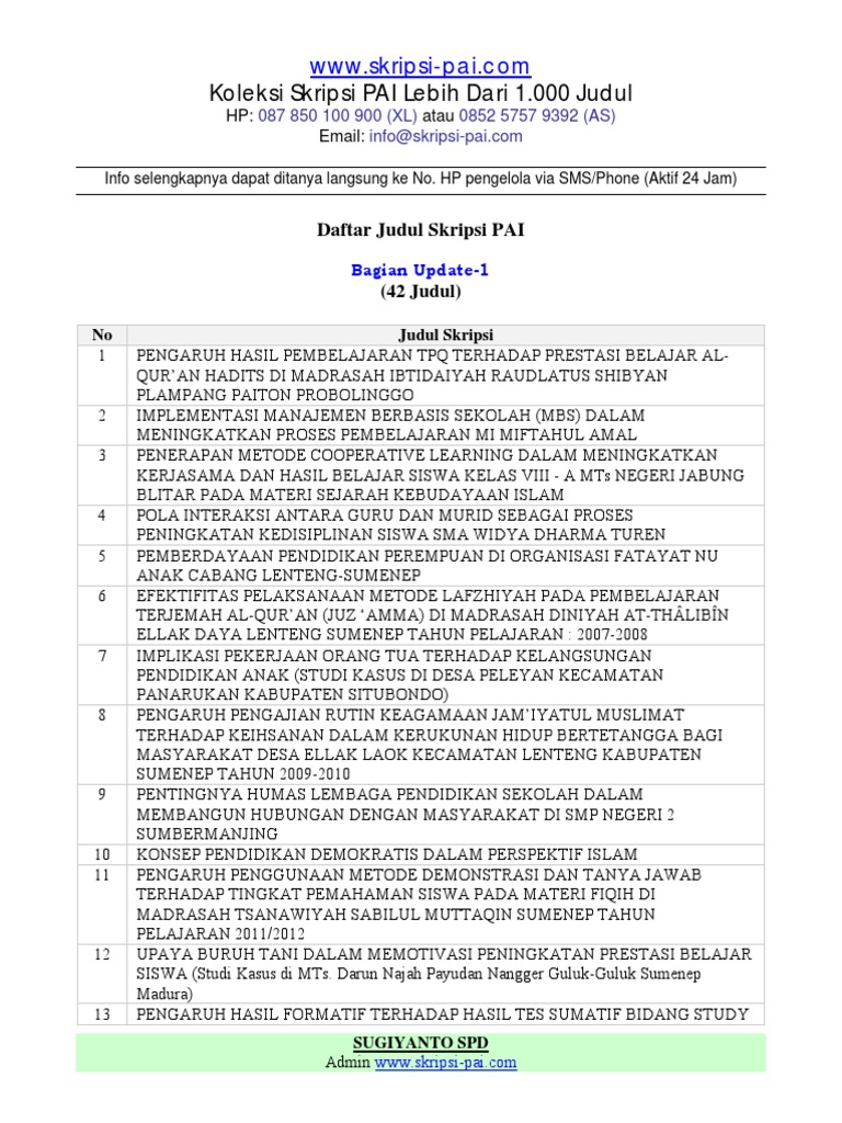 Daftar 2.000+ Judul Skripsi PAI untuk Bahan Referensi, Acuan, dan Penelitian Lanjutan Download filenya di www.skripsi-pai.com
