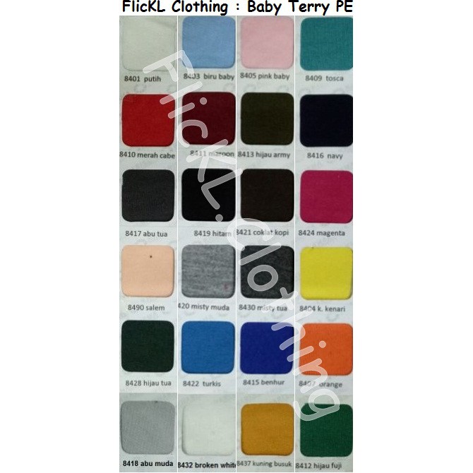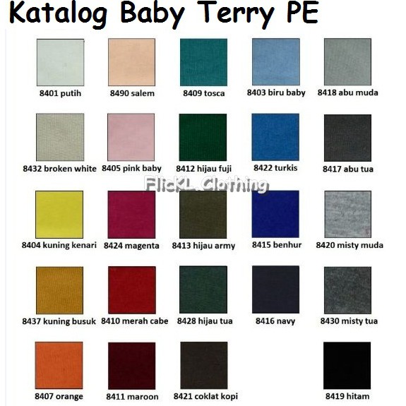 Katalog Warna Bahan Kain Baby Terry Full Cotton, CVC Atau PE