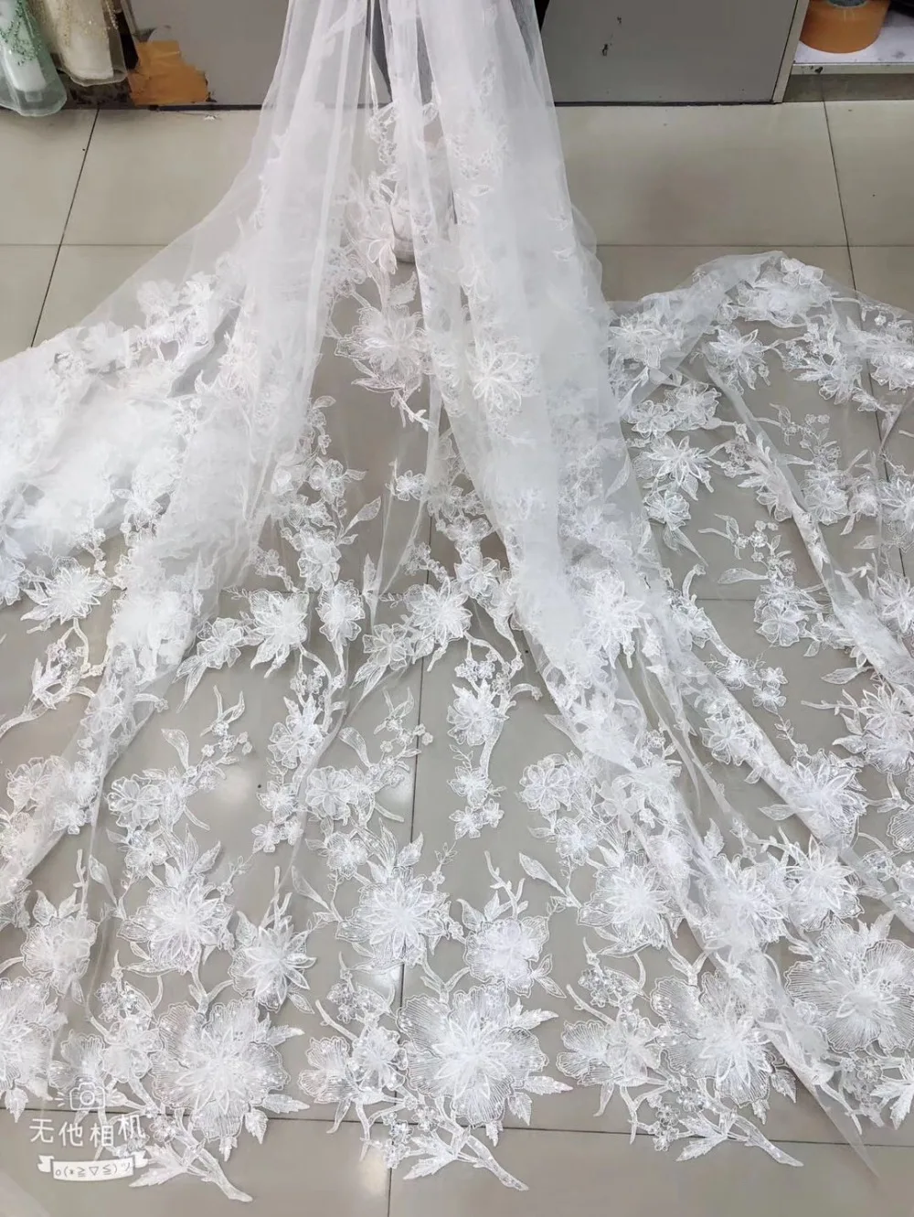 3d Lace Flowers Motifs Beaded And Corded Lace Fabric For Bridal In White - Buy Embroidered Beaded Tulle Fabric,Lace Tulle Fabric For Wedding Veil,Scalloped Embroidery Lace For Dress Product on Alibaba.com
