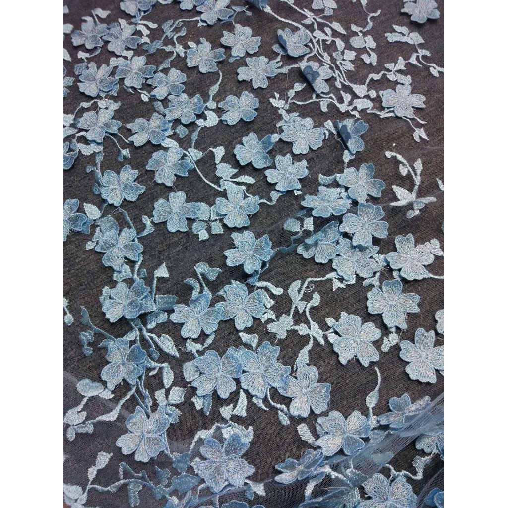 Baby Blue 3D Embroidery Lace Fabric kain Renda Mesh Sulaman Floral Fabric Kain Bersulam Bridal Wedding Dress | Shopee Malaysia