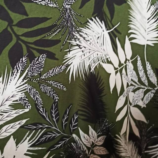 Kain katun Rayon motif floral daun pakis army | Shopee Indonesia