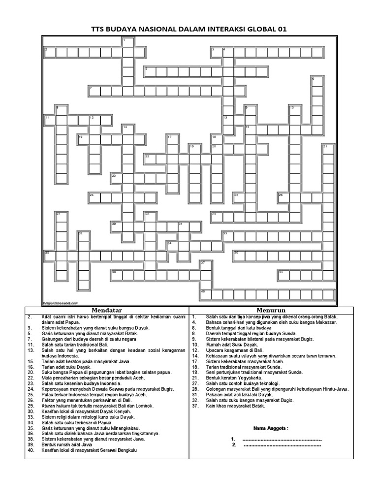 Kunci Jawaban TTS Indonesia # 141 [ Bahasa Indonesia ] - Antwoorden