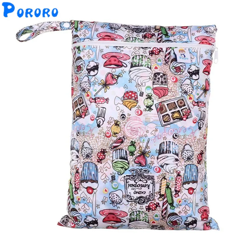 10 PCS lampin beg basah bayi kalis air beg kain lampin satu poket zip cetak bayi boleh diguna semula Nappy PUL beg basah 30x40cm