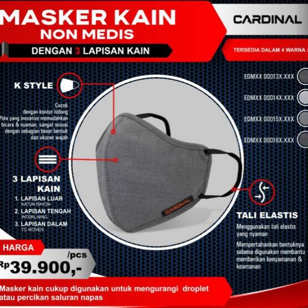 Jual MASKER KAIN NON MEDIS MERK CARDINAL 3 PLY MASKER 3 LAPISAN …