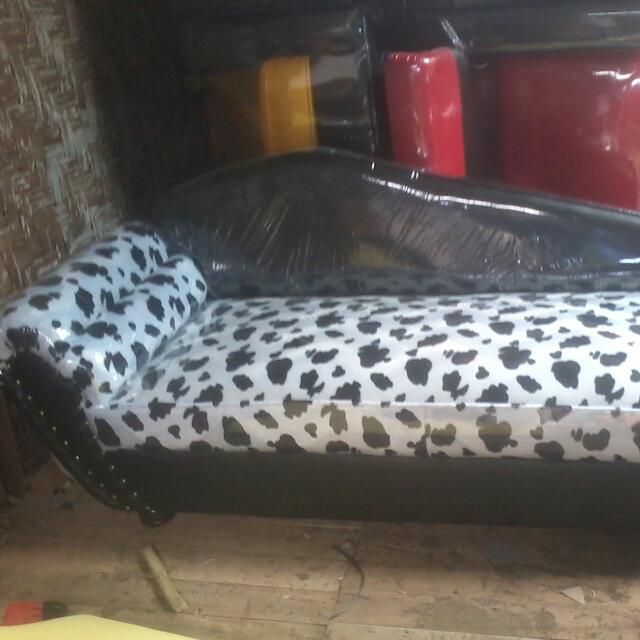 Sofa Santai Hitam Motif Sapi Kulit Oscar+kain Baldu., Perabotan Rumah di Carousell
