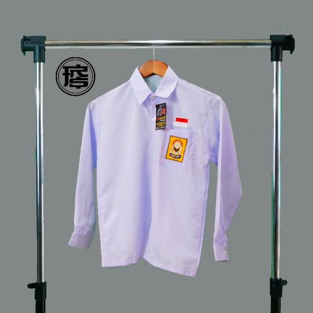 Baju putih lengan panjang manset (ada kancing di lengan) lambang SMP bahan licin / seragam sekolah | Shopee Indonesia