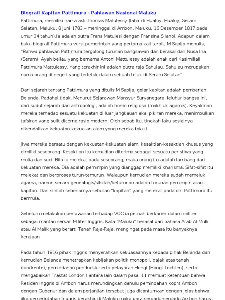 DOC) Biografi dan Sejarah Perjuangan Kapitan Pattimura | Hermansyah Sihombing - Academia.edu
