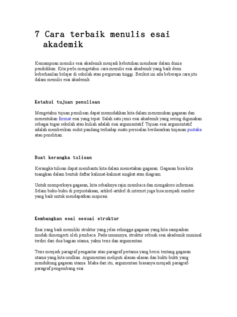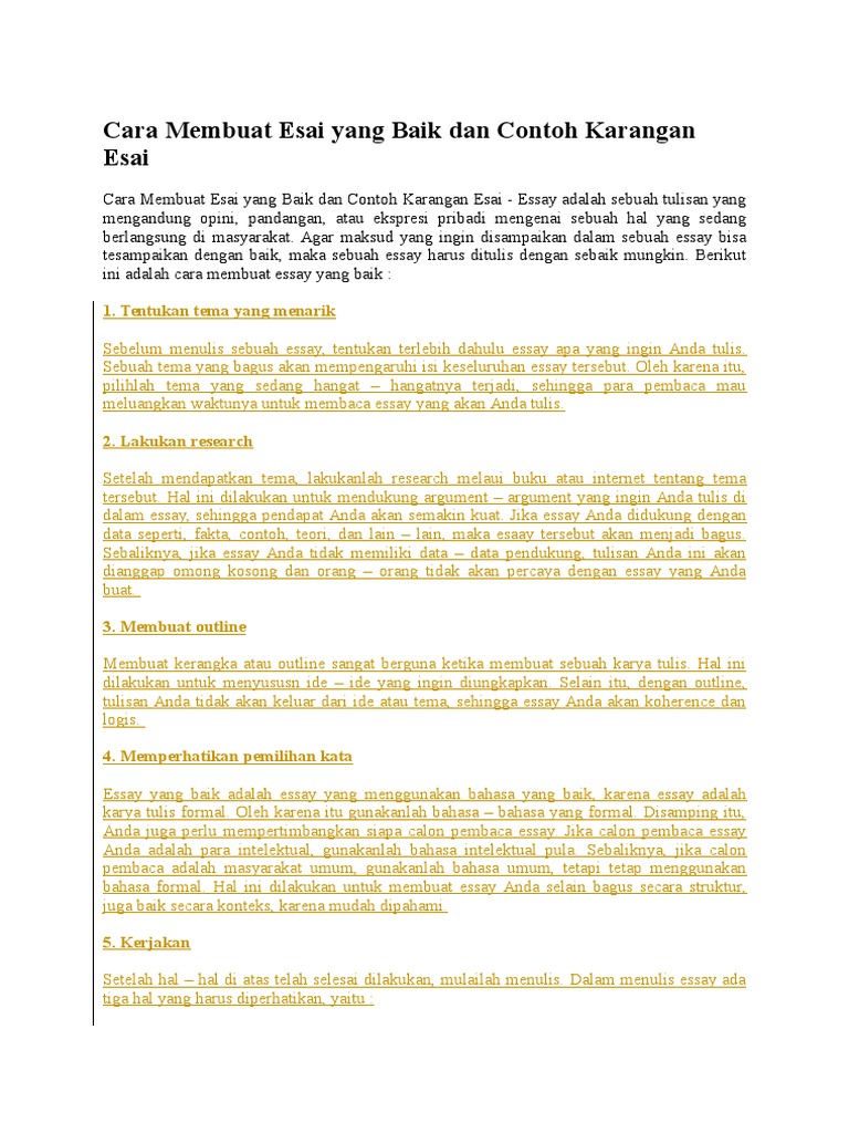 DOC) Cara Membuat Esai yang Baik dan Contoh Karangan Esai …