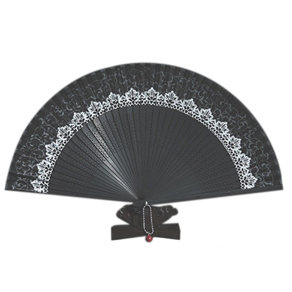 Kipas Lipat Elegan Bahan Kain Warna Hitam untuk Musim Panas …