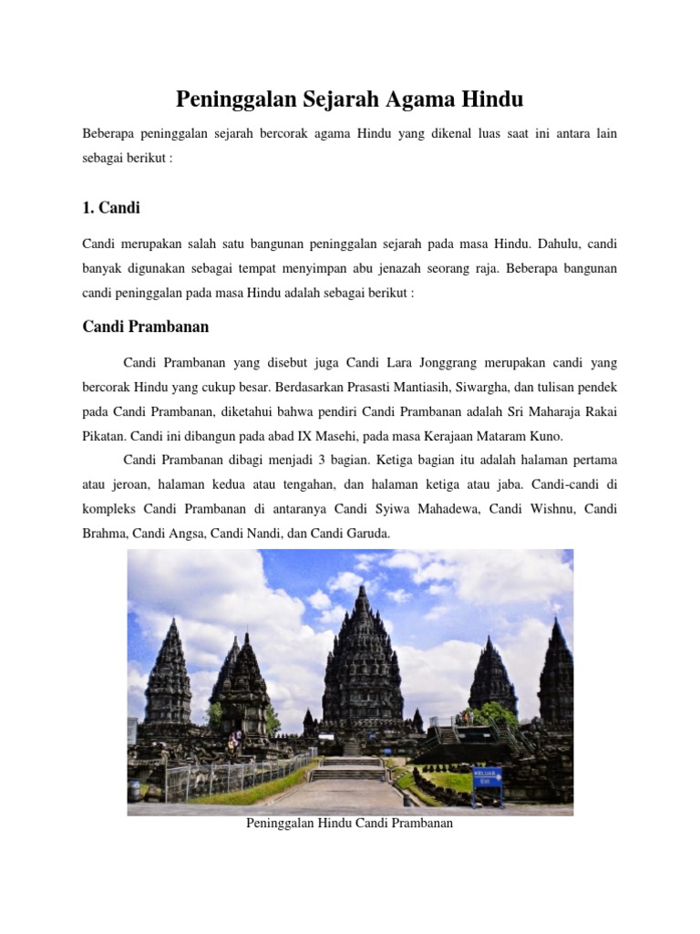 Peninggalan Sejarah Agama Hindu: 1. Candi