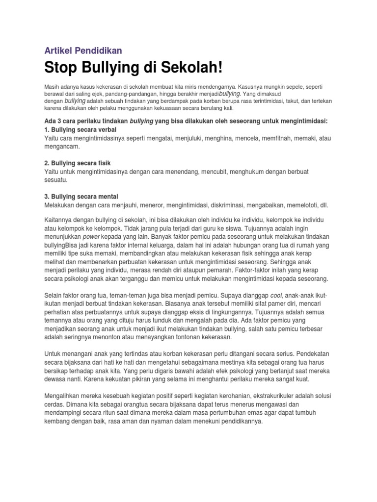 DOC) Artikel bahasa inggris tentang bullying | Yusril Ayrell …