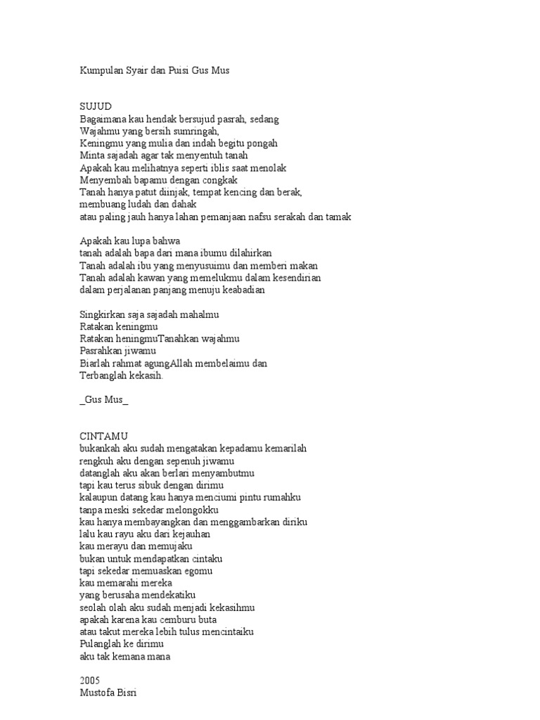 Kumpulan Syair Dan Puisi Gus Mus