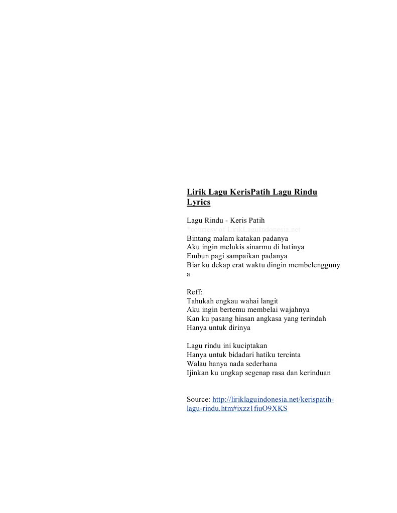 Li dch bŕi hát Lagu Rindu - Kerispatih