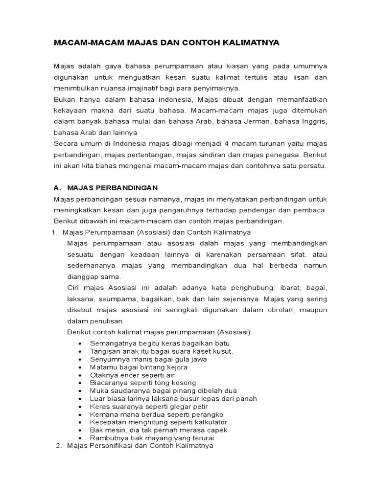 majas.docx - Secara umum di Indonesia majas dibagi menjadi 4 macam …