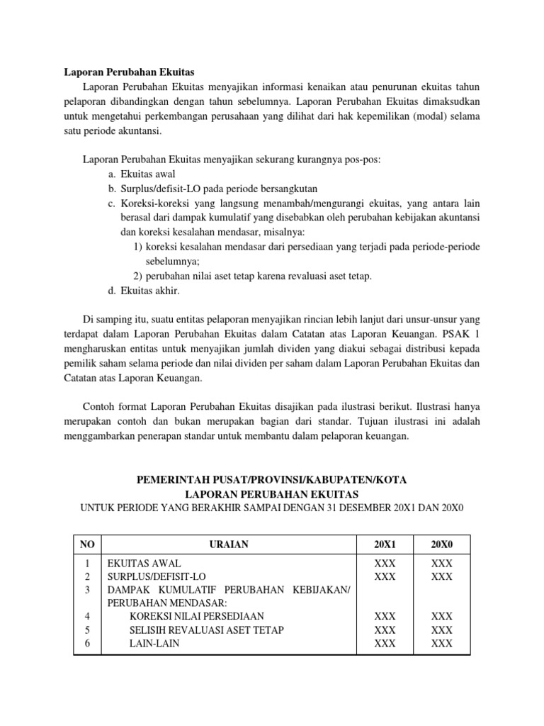 6 Contoh Format Laporan Perubahan Ekuitas Pemerintah Pusat