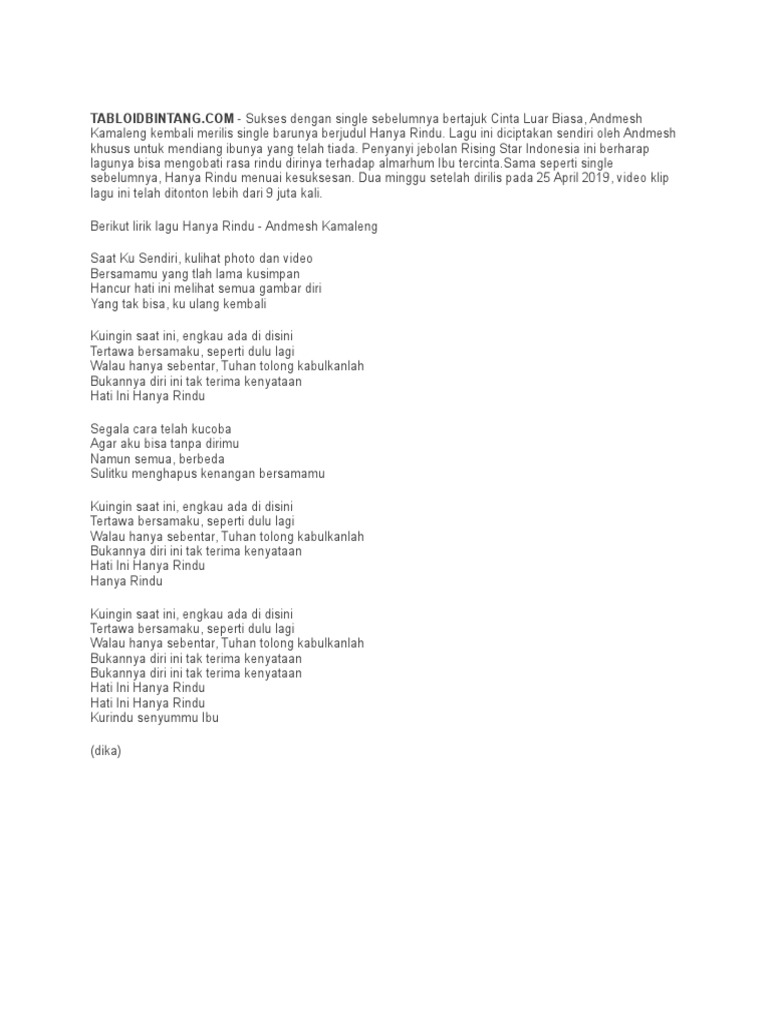 lirik lagu ANDMESH KAMALENG - HANYA RINDU - Wattpad