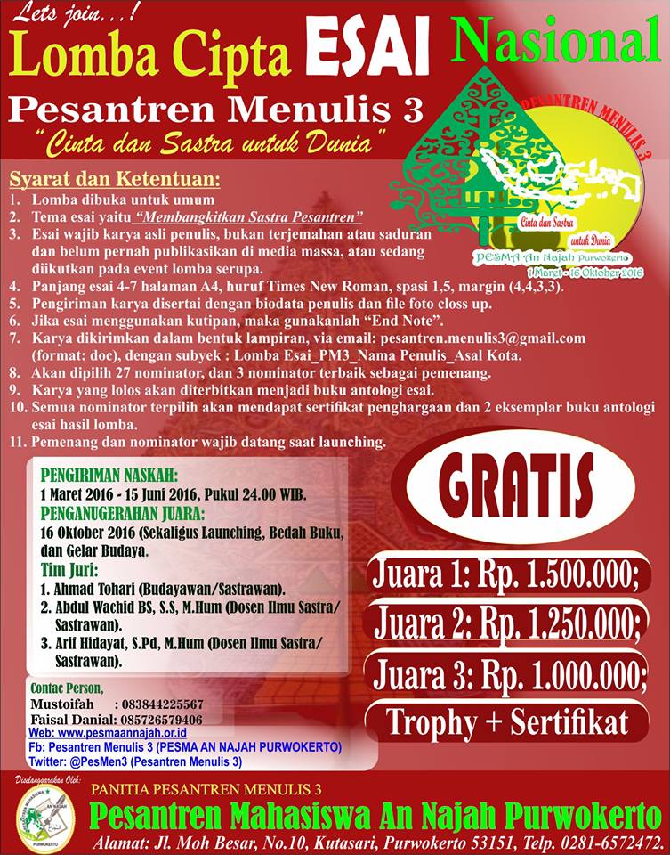 Lomba Cipta Esai Tingkat Nasional Pesantren Mahasiswa An Najah …