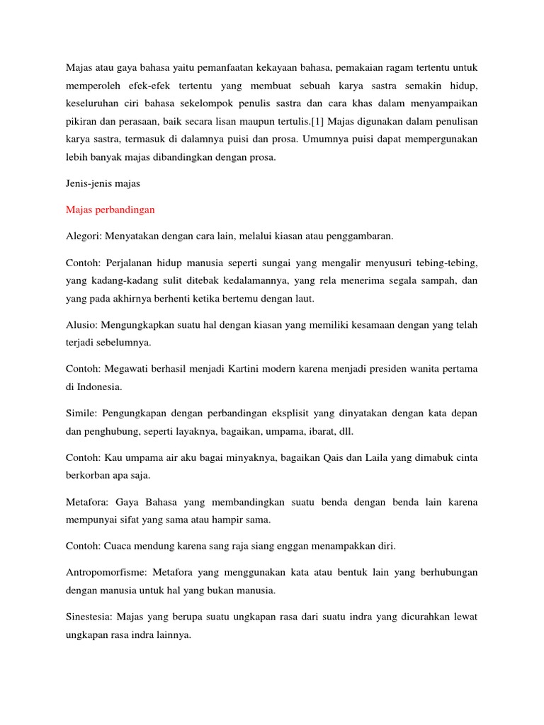 Macam Macam Majas Pengertian Dan Contohnya Lengkap 2019
