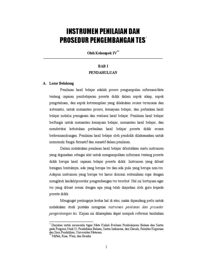 Makalah Hasil Penilaian dan Prosedur Pengembangan Teks Bahasa Indonesia