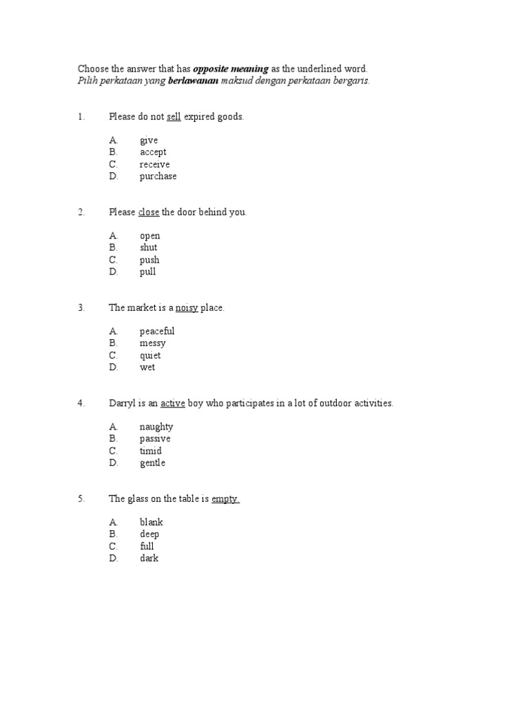 Pilih perkataan yang berlawanan maksud dengan perkataan bergaris