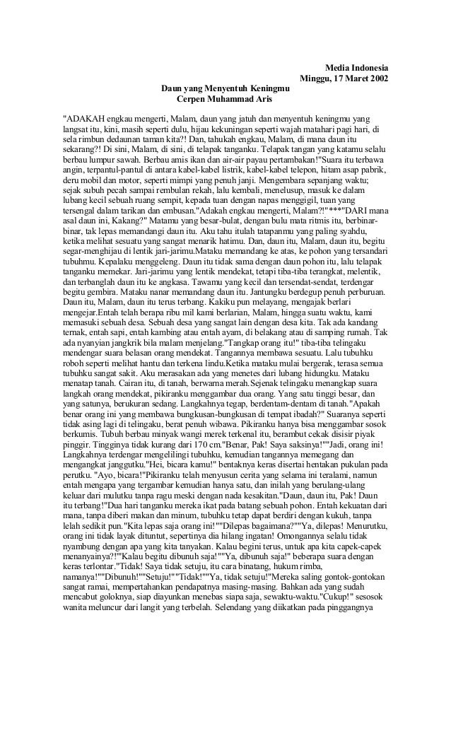Halaman Cerpen Media Indonesia, Minggu,… - Obrolan Pembaca MI | Facebook