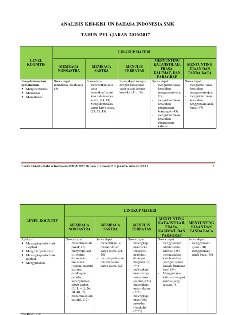 Analisis Kisi Kisi Un Bahasa Indonesia Smk 2017
