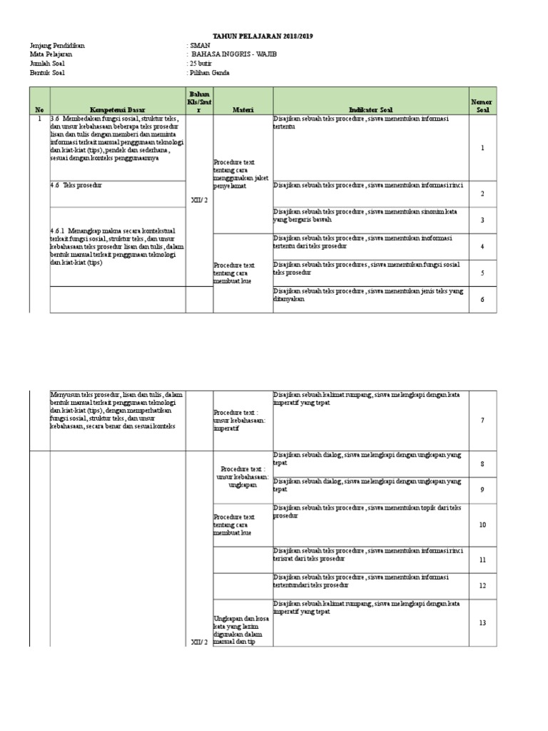 KISI-KISI ULANGAN SEMESTER GANJIL TERBARU KELAS 11.doc - No 1 2 KOMPETENSI DASAR 3.19 Menganalisis informasi berupa umum dan tahapan-tahapan dalam teks | Course Hero