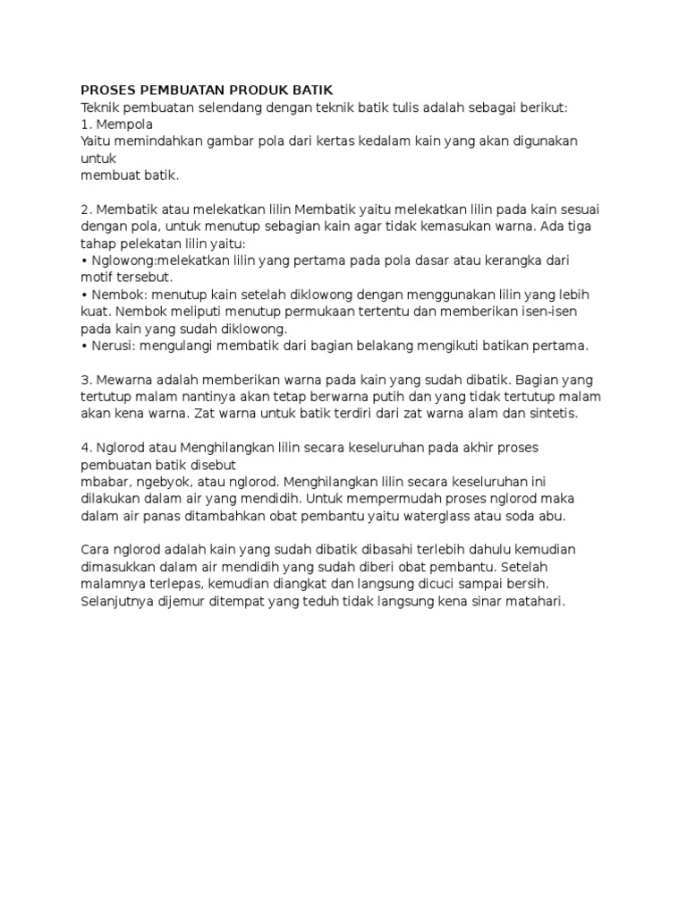 Proses Pembuatan Batik (Nganji, Ngemplong, Nyungging, Nuaplak, Nglowong, Ngiseni, Nembok, Nyolet, Nyelup, Mopok, Nglorod, Nglorod, Pelorotan)