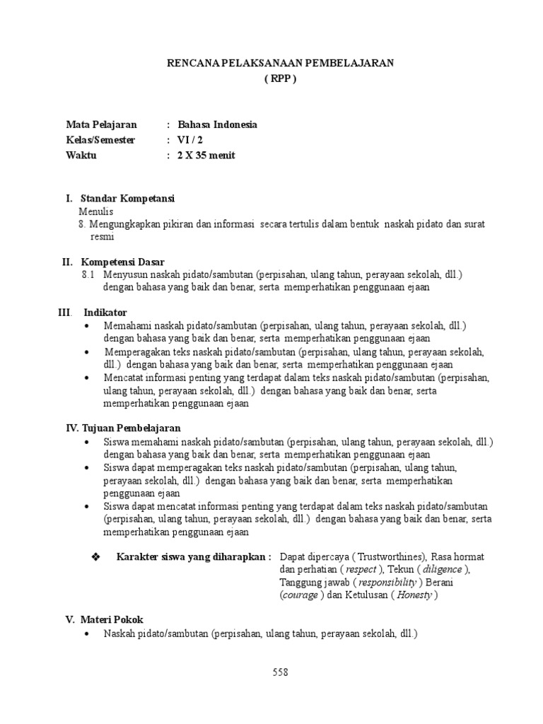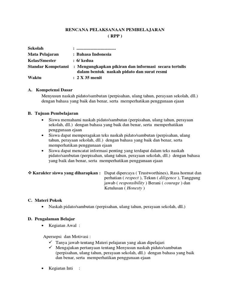 DOC) RPP BAHASA INDONESIA KELAS 6 SEMESTER 2 | Rachmah Safitri …