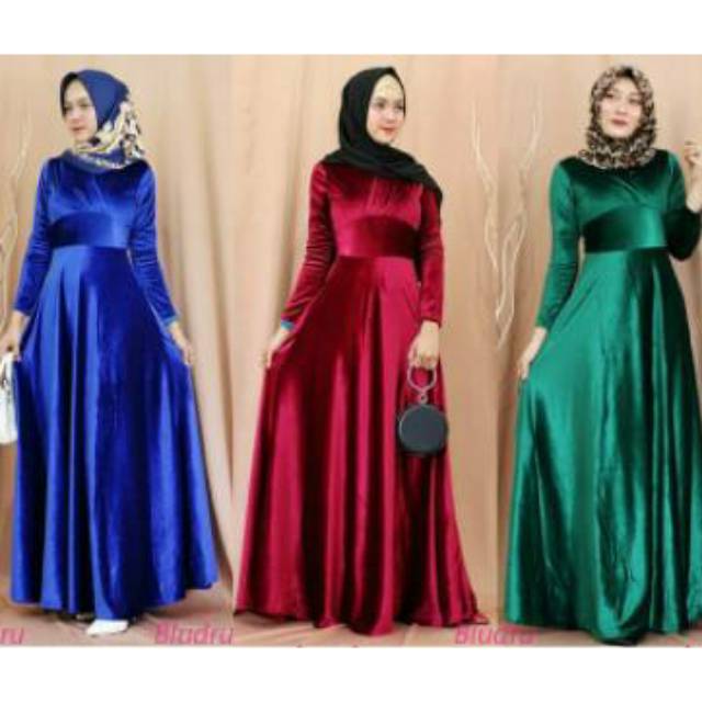Jual dress muslim bahan bludru real pict gamis muslim bahan bludru-sania ma - Kota Surakarta - LZonaFashion | Tokopedia