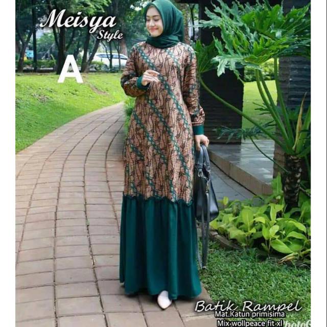 Gamis etnik kombinasi model rempel duyung bahan katun mix wolfis banyak pilihan motif SIMIFASHION | Shopee Indonesia