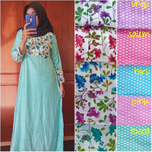 30+ Model Gamis Katun Jepang Motif Bunga & Polos 2020