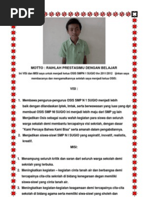 Ini Visi Dan Misi Saya Untuk Menjadi Ketua Osis Smpn 1 Sugio Thn 2011/2012 Ijinkan Saya Membacanya Dan Mengamalkannya Setelah Saya Menjadi Ketua Osis